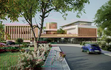 Le Centre de Formation SAR a été conçu comme un pôle d’excellence dédié à la transmission du savoir et au développement des compétences professionnelles. L’architecture contemporaine se distingue par une composition équilibrée entre volumes horizontaux et verticalité maîtrisée, affirmant une identité forte et institutionnelle.