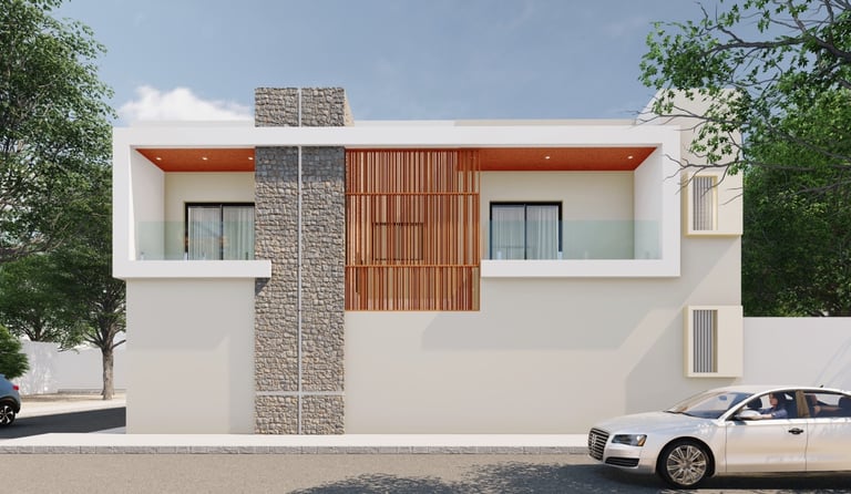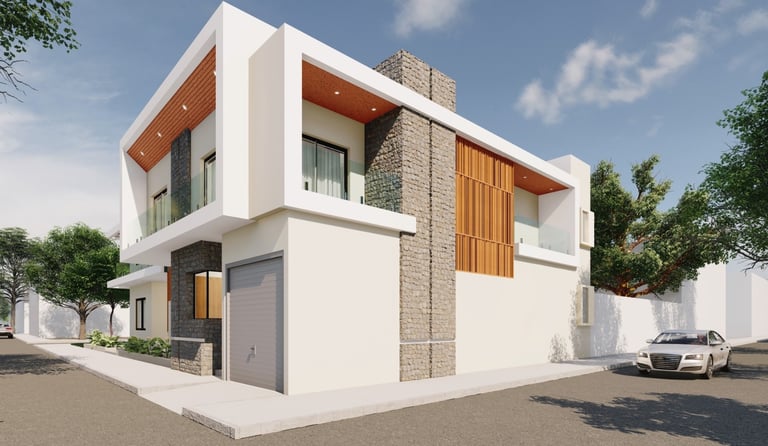 Ce projet de villa incarne une architecture contemporaine épurée, où les lignes nettes, les volumes géométriques et l’harmonie des matériaux créent une présence à la fois élégante et discrète. La façade blanche, rythmée par de larges baies vitrées et des accents de bois, s’ouvre sur des espaces intérieurs inondés de lumière naturelle. Le jardin soigné et le chemin d’accès en béton accentuent l’intégration du bâtiment dans son environnement, tout en affirmant un caractère résolument moderne. À l’intérieur, la fluidité des circulations et la hauteur sous plafond renforcent la sensation d’espace et de sérénité. Chaque détail, de l’éclairage chaleureux aux finitions soignées, participe à une atmosphère à la fois fonctionnelle et raffinée. Cette maison incarne l’équilibre entre esthétique minimaliste et confort quotidien, offrant un cadre de vie lumineux, apaisant et intemporel.