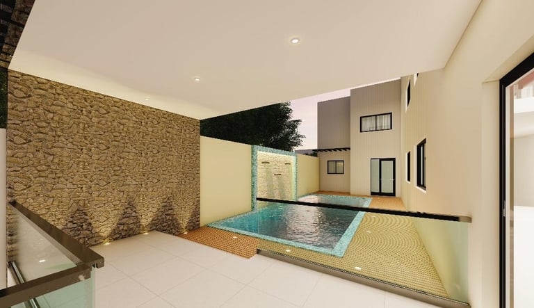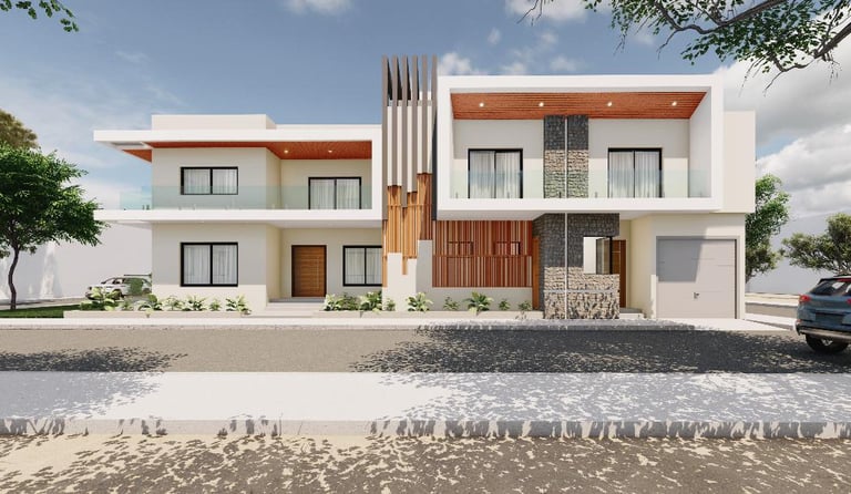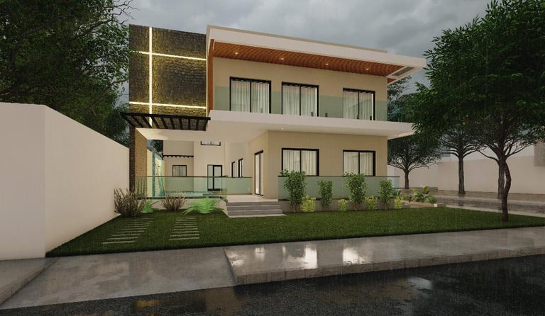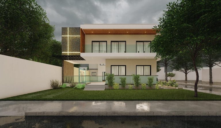 Ce projet de villa incarne une architecture contemporaine épurée, où les lignes nettes, les volumes géométriques et l’harmonie des matériaux créent une présence à la fois élégante et discrète. La façade blanche, rythmée par de larges baies vitrées et des accents de bois, s’ouvre sur des espaces intérieurs inondés de lumière naturelle. Le jardin soigné et le chemin d’accès en béton accentuent l’intégration du bâtiment dans son environnement, tout en affirmant un caractère résolument moderne. À l’intérieur, la fluidité des circulations et la hauteur sous plafond renforcent la sensation d’espace et de sérénité. Chaque détail, de l’éclairage chaleureux aux finitions soignées, participe à une atmosphère à la fois fonctionnelle et raffinée. Cette maison incarne l’équilibre entre esthétique minimaliste et confort quotidien, offrant un cadre de vie lumineux, apaisant et intemporel.